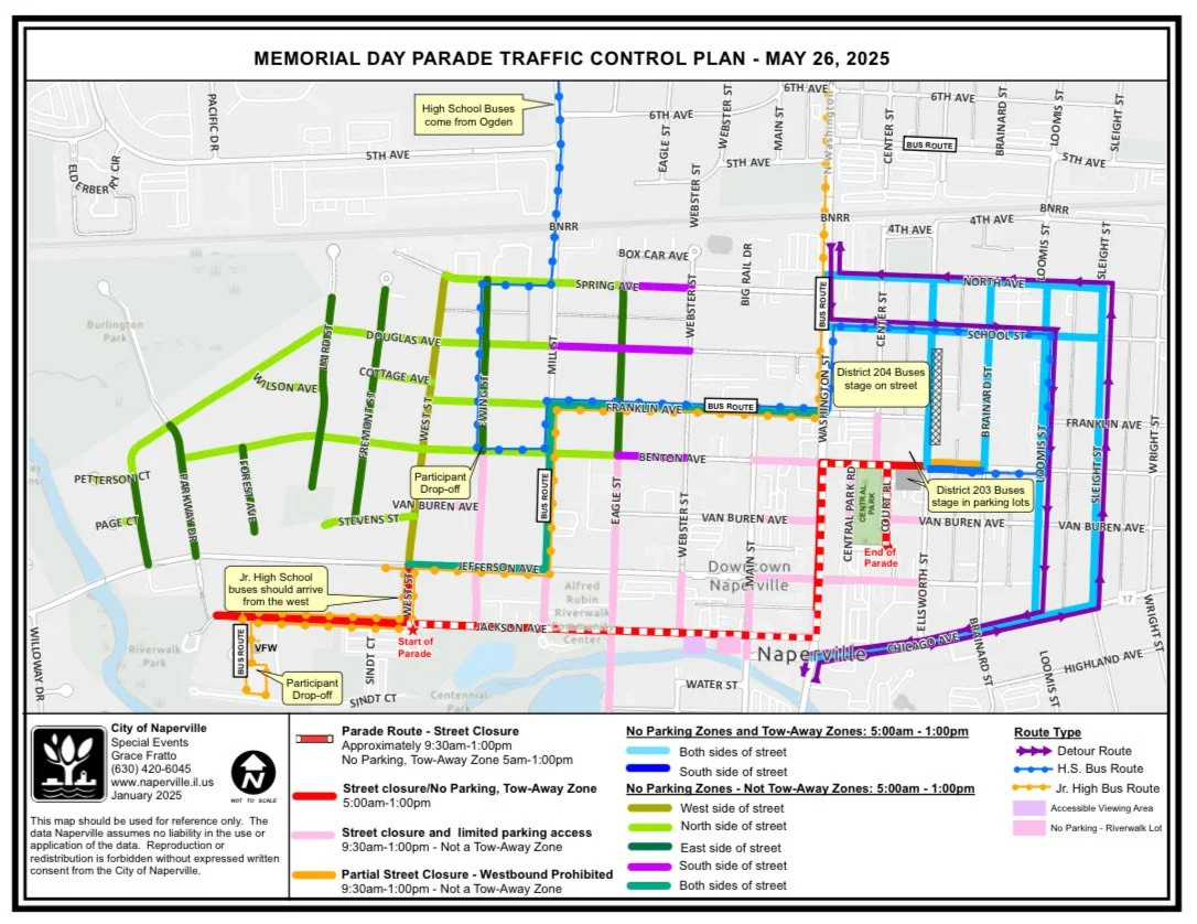 Parade route and parking restrictions as of 5/2025.